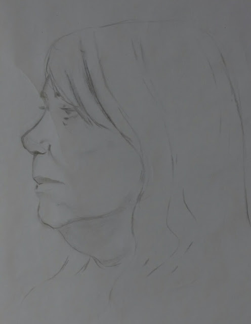 I really enjoyed the session where we got to draw faces. I struggled at first, not feeling confident enough to make any bold marks. After some tuition from Tessa, I felt more at ease and loosened up a bit. The first face I drew turned out pretty well, though the nose is too sharp and the nostrils aren't defined. The last face is my favourite study from all the sessions I went to. It looks like a real person. I learnt to make light marks and build up on them for a more realistic effect. I also paid more close attention to her bone structure and how all the facial features work with each other.